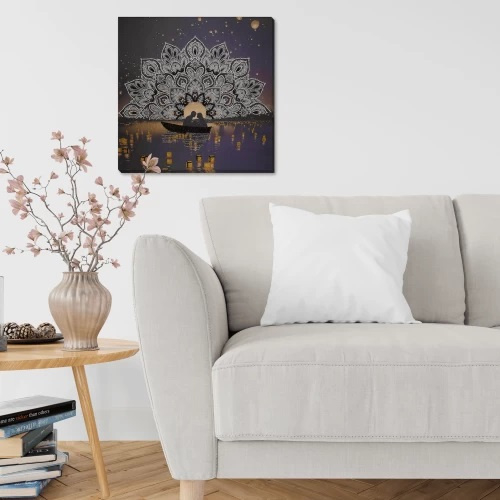 Het ontwerp is voorbedrukt op natural art canvas.